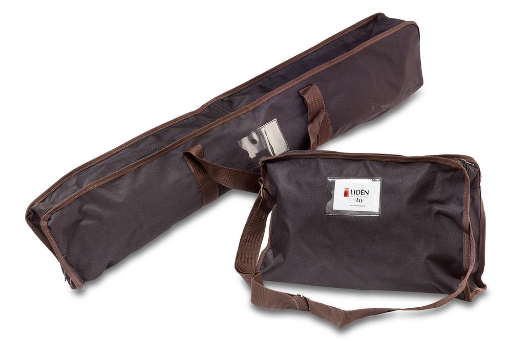 Flexible bags for easy tansport of portable wheelchair scale.