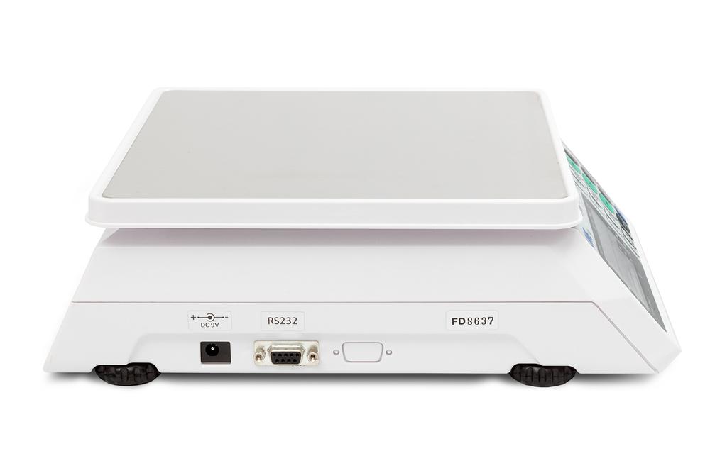 Price memory scale with a smooth and appealing design, can be connected to POS or P.C for communication via RS232. Battery and charger included as well as customer & operator's display. Scale plate 230x250mm